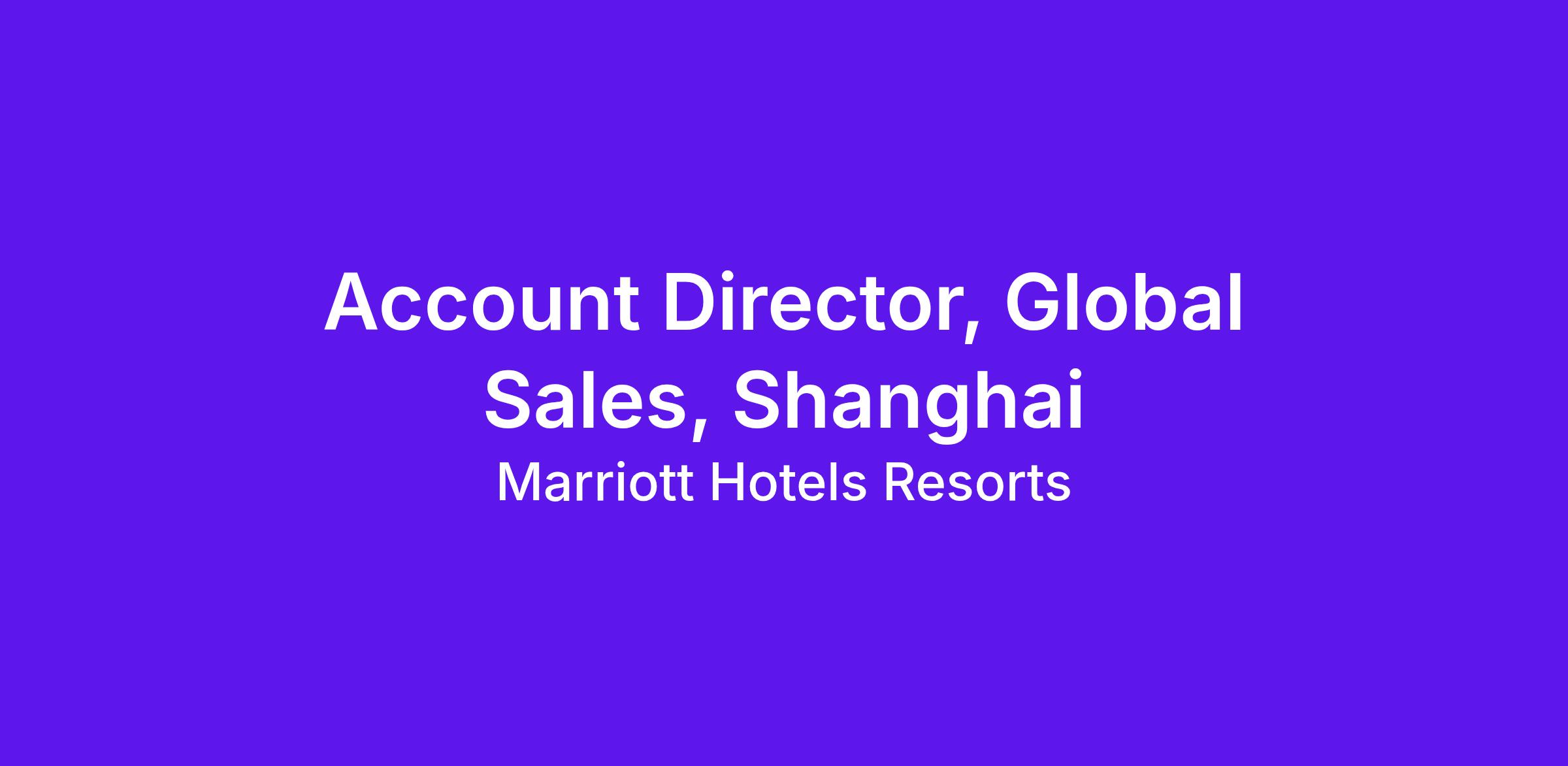The Account Director, Global Sales Shanghai manages and/or provides dedicated support to a targeted portfolio of complex GSO accounts. The position builds and maintains business relationships with key buying influences in order to achieve account market share goals across all Marriott Lodging brands. The primary focus is on opportunities to increase preference and loyalty, and improve the overall buying process by emphasizing an ‘ease of doing business with Marriott’. In the role of Account Director, Global Sales Shanghai, this position has direct accountability for transactional sales activities within their assigned accounts.