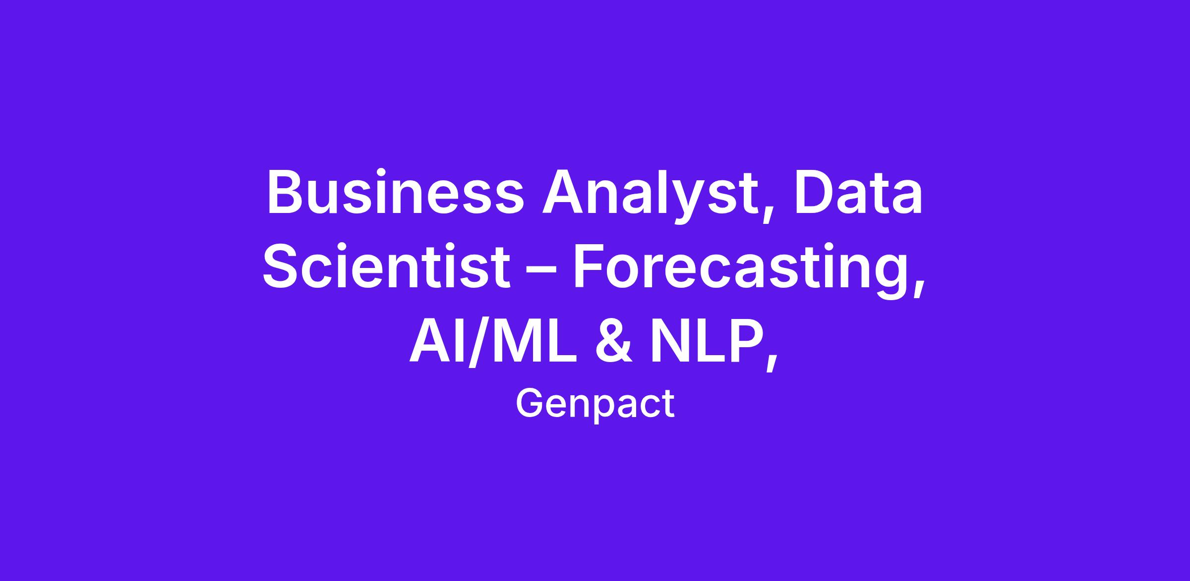 Inviting applications for the role of Business Analyst, Data Scientist – Forecasting, AI/ML & NLP,