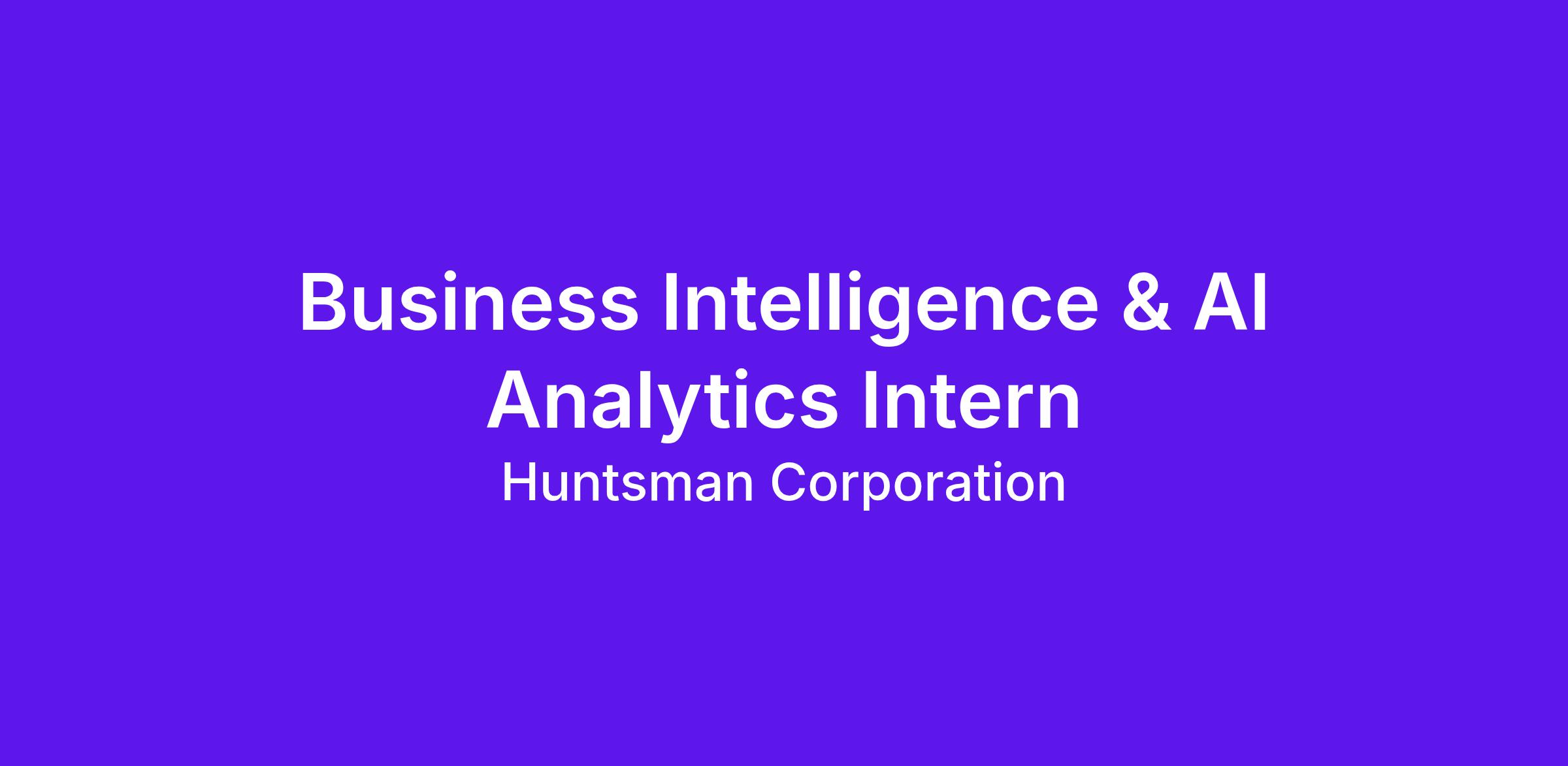 Huntsman Corporation is now looking for a dynamic individual as a Business Intelligence & AI Analytics Intern. Huntsman Global Business Services (GBS) KL is seeking a dynamic and tech-curious intern to support our Business Intelligence (BI) and AI initiatives. This internship offers hands-on experience with building dashboards, and exploring how AI and GenAI can enhance reporting, insights, and decision-making across the organization.
