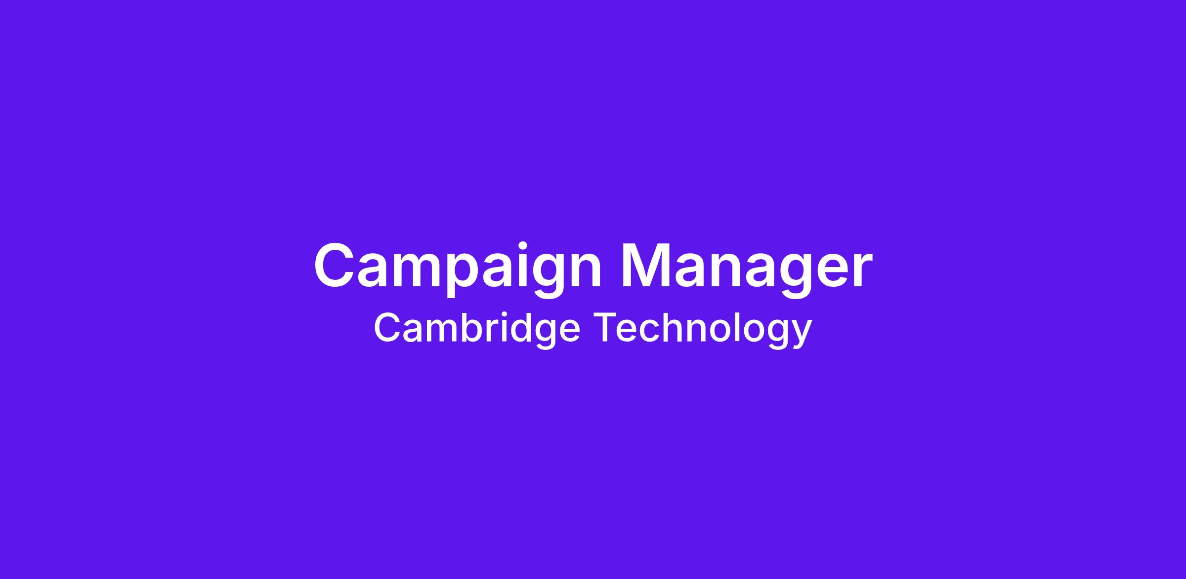 We're seeking a hands-on Campaign Manager to lead multi-channel campaign execution across Cambridge Technology's diverse business divisions. This role requires a strategic executor who can design, launch, and optimize campaigns across email, social media, and paid channels while managing the full campaign lifecycle from concept to measurement.