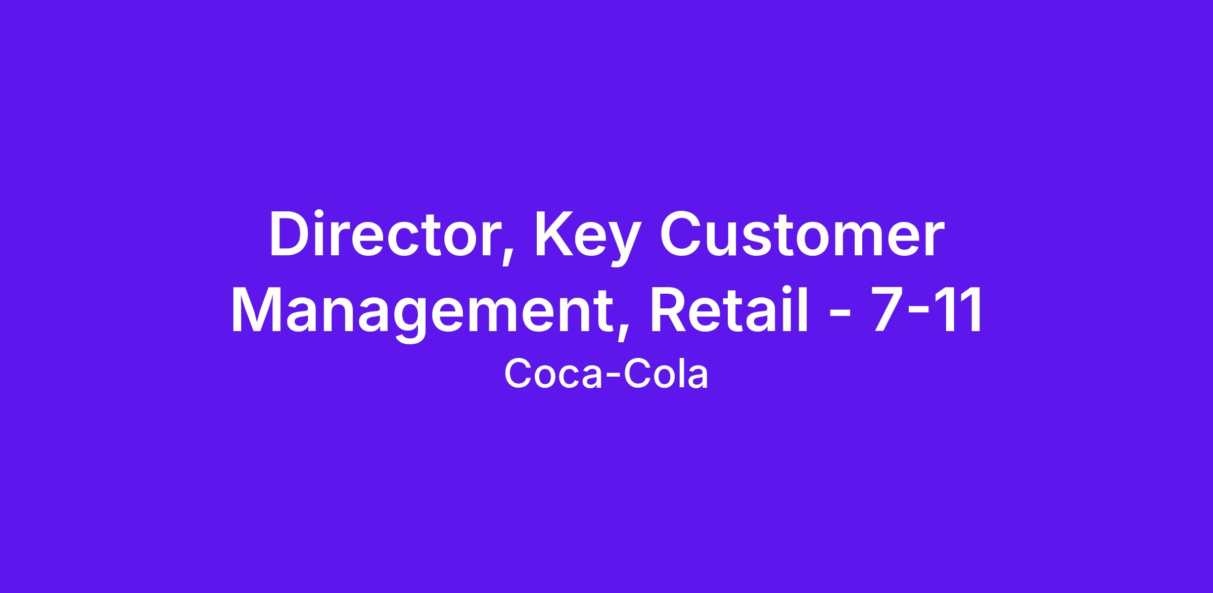 As Director, Key Customer Management, Retail – 7-11, you will lead the end‑to‑end management and growth of Coca‑Cola’s key Retail customers, acting as the business owner for a portfolio of strategic partners (e.g. 711. The portfolio may evolve in response to changing business priorities and market conditions). This role is accountable for managed accounts’ P&L and overall business results delivery, shaping specific customer strategies, driving joint business planning and delivering sustainable top-line and profit growth through disciplined execution and strong cross‑functional collaboration.