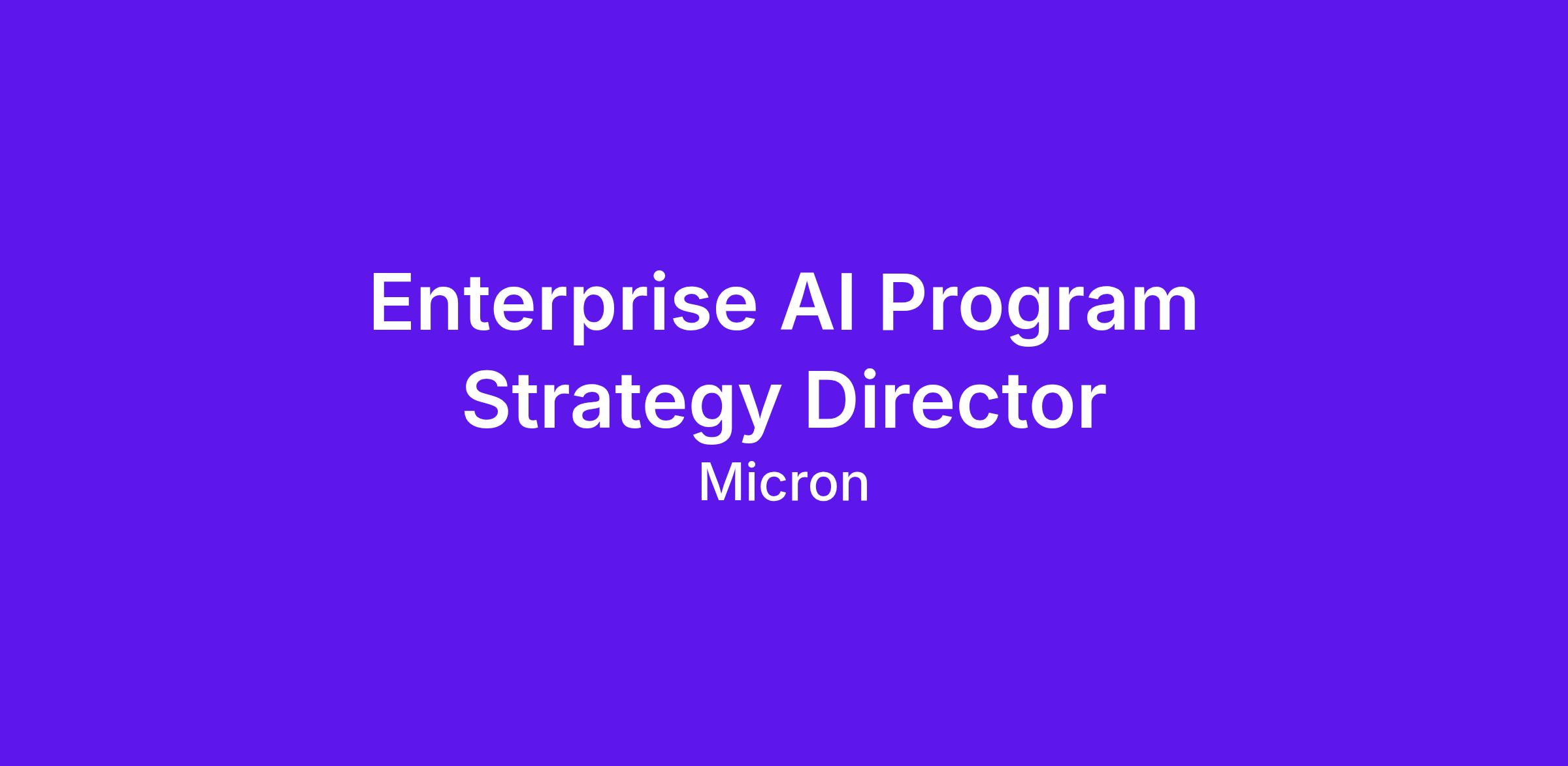 As Enterprise AI Program Strategy Director, you will be responsible to partner with functional leaders, SMAI, IT, People org and finance counterparts to identify, prioritize and scale cross-functional high-impact AI use cases across Micron that can translate into measurable productivity gains, financial outcomes and/or strategic advantage for Micron. You will be working in close partnership with cross-functional leaders, subject matter experts and external experts (where relevant) to (1) establish clarity on functional top-tier productivity metrics and corresponding Micron AI value framework, (2) set near-term and long-term functional productivity goals based on AI-enabled opportunities (incl. GenAI / agentic AI / embodied AI / other traditional productivity tools etc.) benchmarks, (3) drive line-of-sight towards goals set, and (4) enable a robust cross-functional AI use case intake, prioritization and tracking platform to contribute towards Micron’s vision of building a frontier firm with best-in-class human-agent organization.
