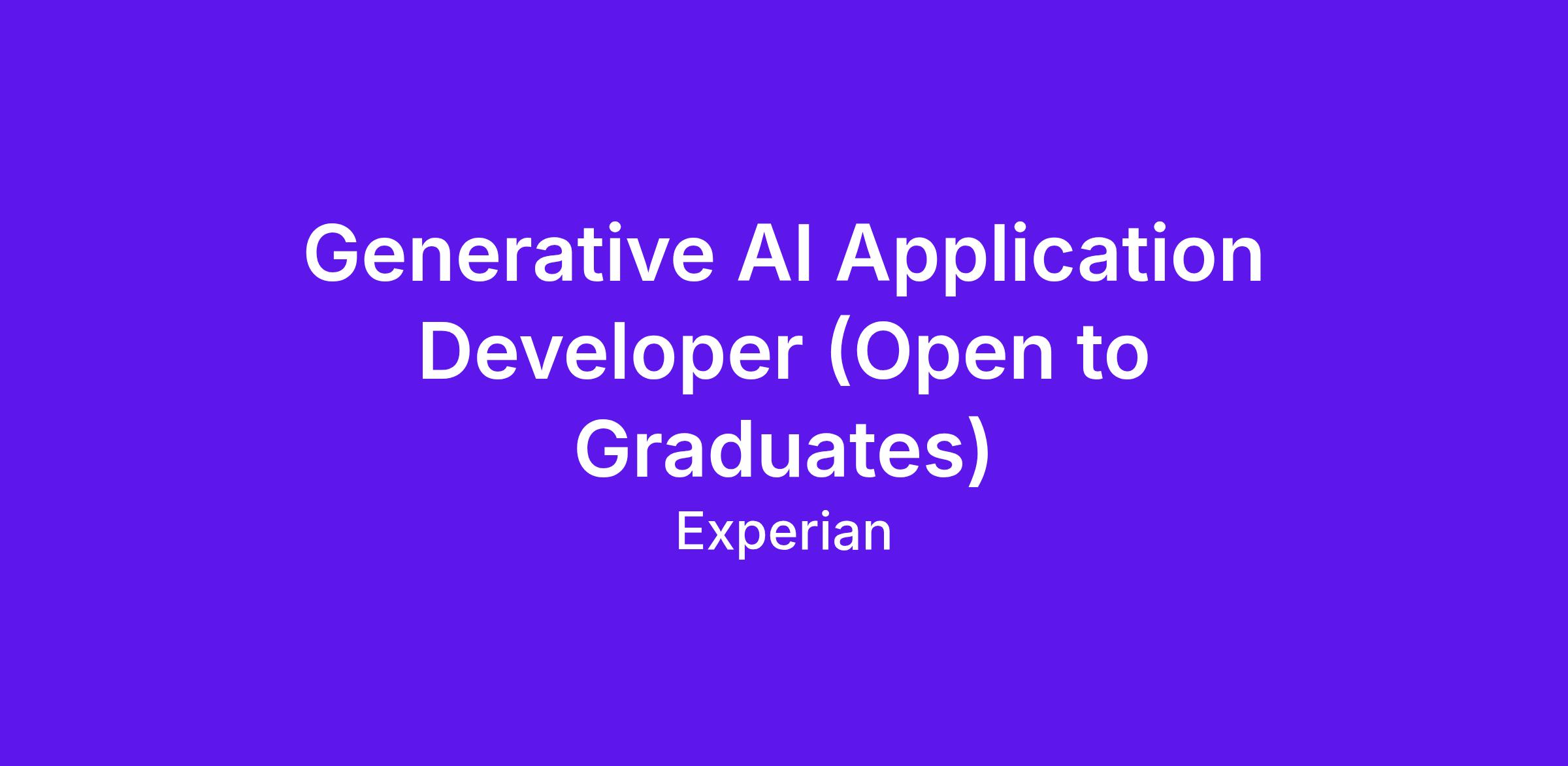 We are looking for a motivated Entry-level Generative AI Application Developer to join our team and help build AI-powered internal applications such as chatbots, copilots, and workflow automations. In this role, you will support senior engineers in developing generative AI applications that integrate with Experian’s internal systems and APIs, using modern Python frameworks and large language models. This is a great opportunity for someone passionate about generative AI, eager to learn, and looking to build a career in AI application development.