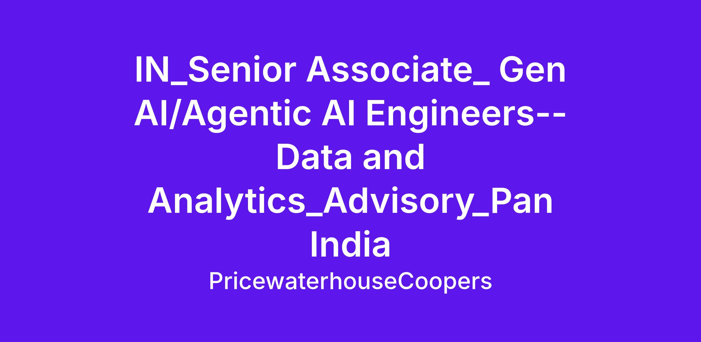 · Gen AI/Agentic AI Engineers · Location - Bangalore/Gurugram · Level - Senior Associate · Experience - 3-7 years · Skills & Experience · Strong background in Python, ML engineering and API development (FastAPIs) · Knowledge of tokenization libraries and GenAI/NLP techniques (RAG, embeddings, transformers). · Hands-on with GenAI frameworks (LangChain, LlamaIndex, DSPy) and Agentic AI orchestration (LangGraph, MCP, A2A, AutoGen, etc.). · Expertise with vector databases, elastic search, unstructured data · Experience with cloud AI/ML services (AWS, Azure, GCP). · Key Responsibilities · Design and implement GenAI applications (chatbots, copilots, knowledge assistants). · Build and manage Agentic AI workflows using orchestration frameworks (LangGraph, Crew AI, MCP, A2A). · Apply ML/AI techniques (supervised/unsupervised learning, optimization, embeddings, retrieval). · Integrate AI with enterprise data, APIs, and cloud-native architecture. · Ensure scalability, security, and cost-effectiveness of deployed solutions.