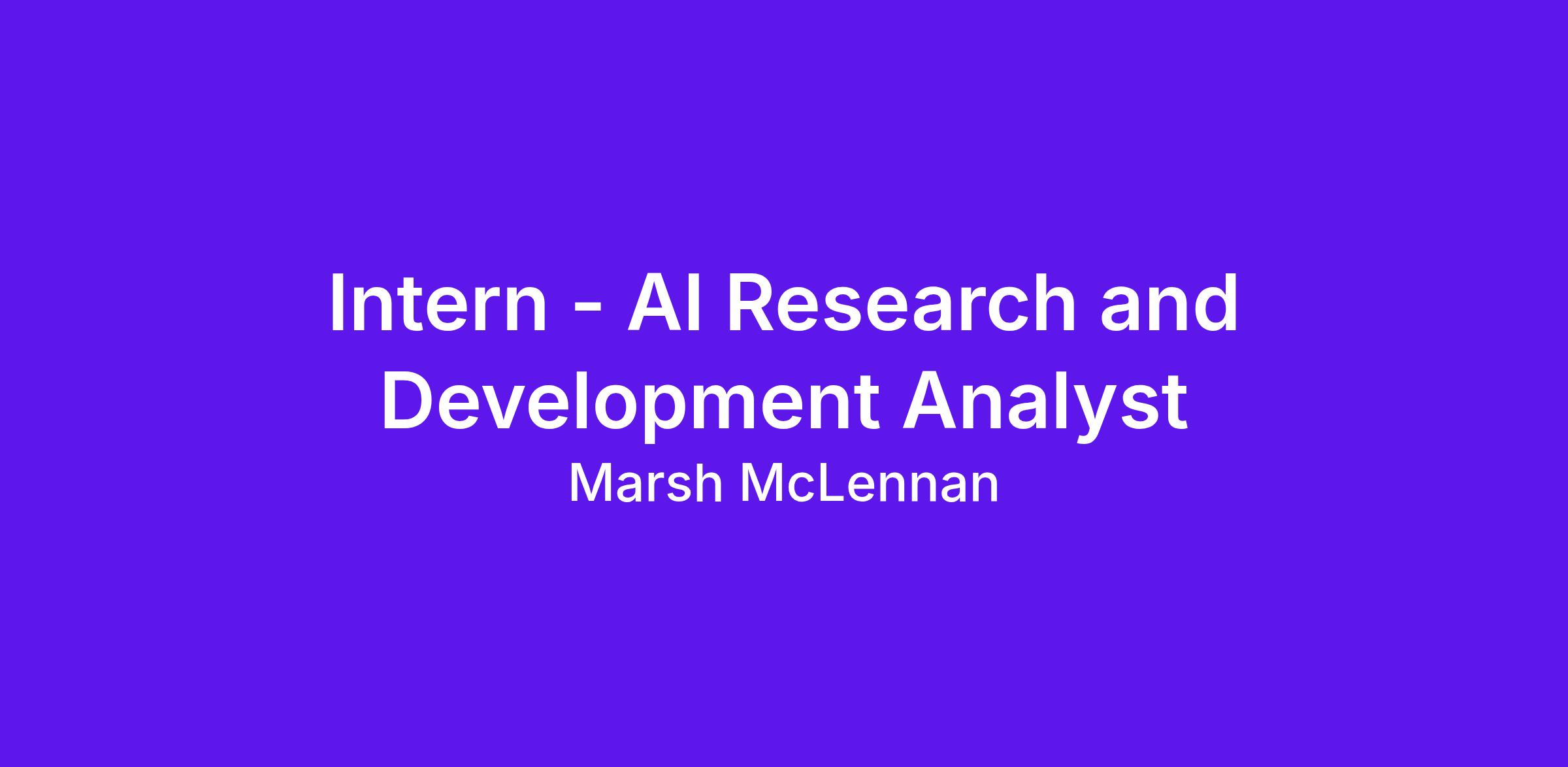 The intern, AI Research and Development Analyst will conduct deep research analysis and develop AI solutions to integrate within the Marsh risk landscape.