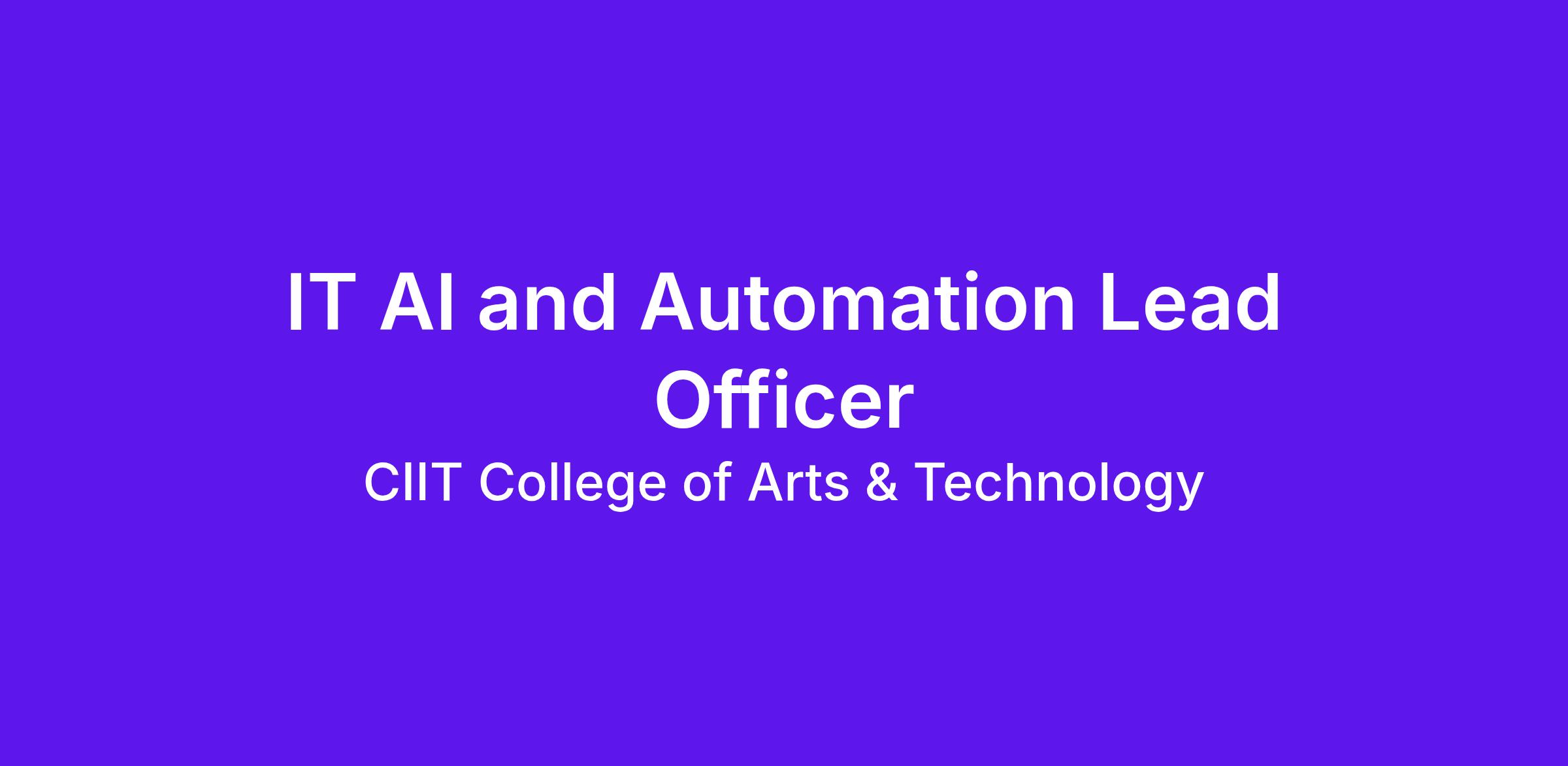 - Lead the identification, design, and implementation of AI and automation solutions across CIIT’s administrative and operational processes