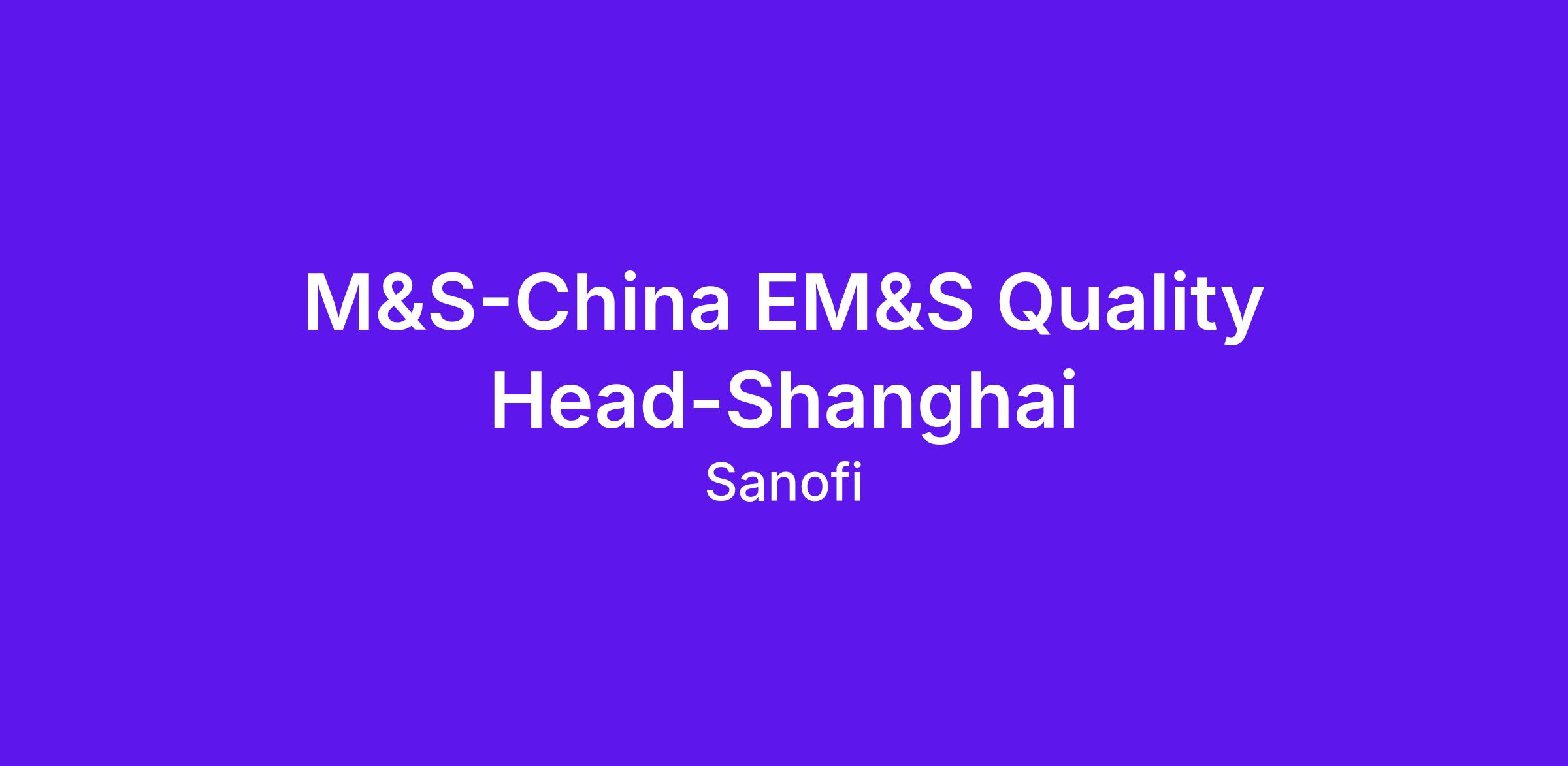 Job title职位名称: China EM&S Quality Head