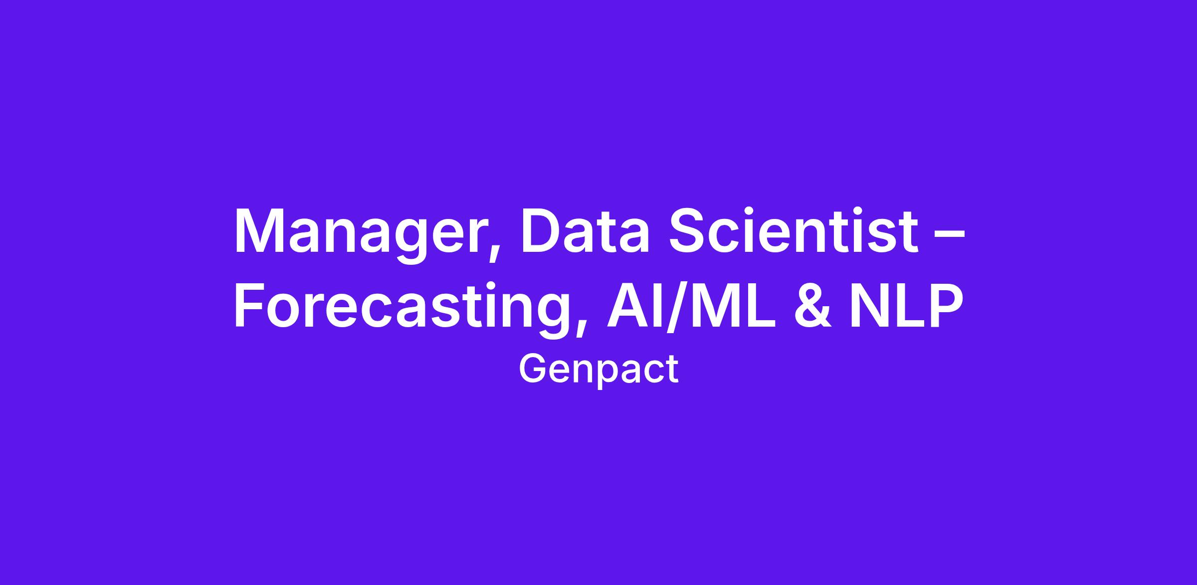 Inviting applications for the role of Manager, Data Scientist – Forecasting, AI/ML & NLP