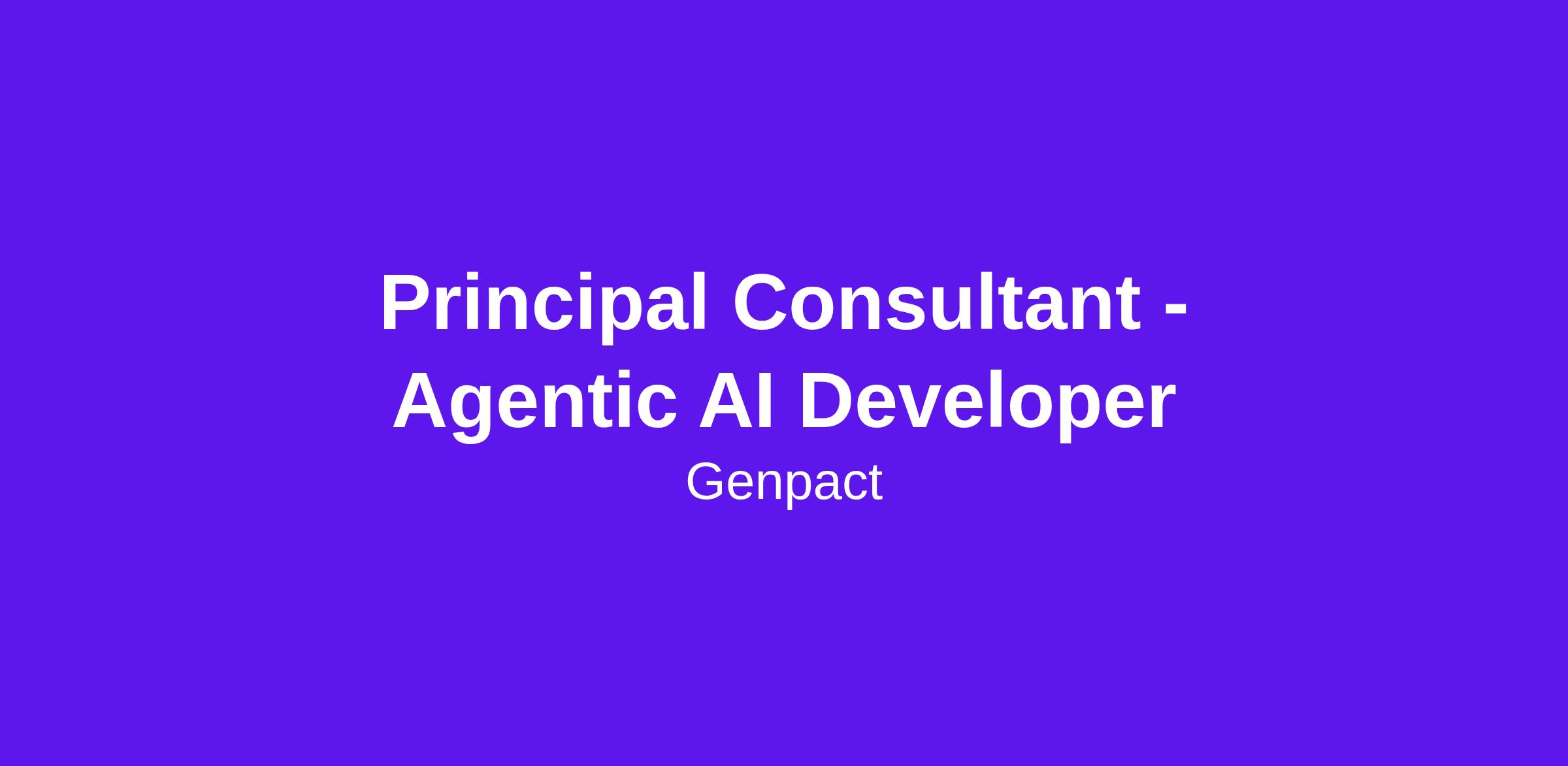 Inviting applications for the role of Principal Consultant, Agentic AI Developer
