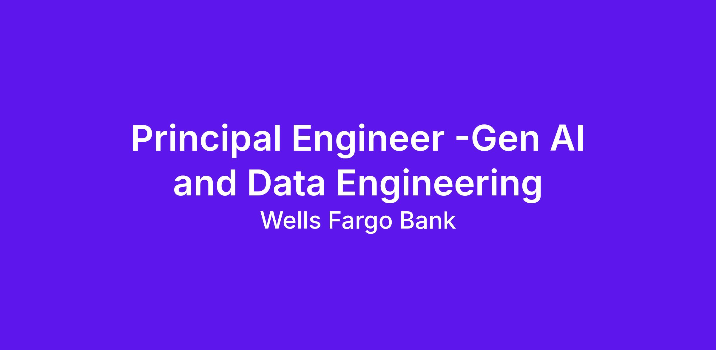 Wells Fargo is seeking a highly motivated Principal Engineer to design, architect, and lead Generative AI and Data Engineering initiatives within the HR Information Technology organization. This role requires a hands‑on technologist who can anchor critical initiatives to drive operational excellence and enhance employee and customer experience.