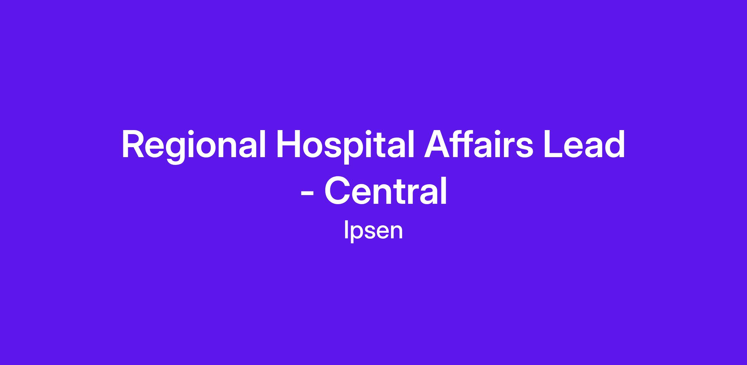 Regional Hospital Affairs Lead - CentralCompany: