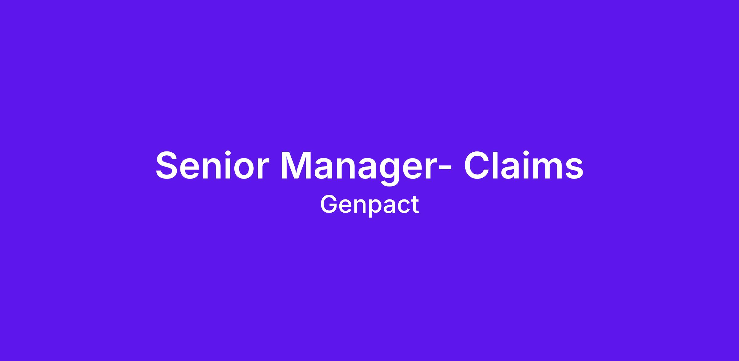 Inviting applications for the role of Senior Manager , Insurance Claims
