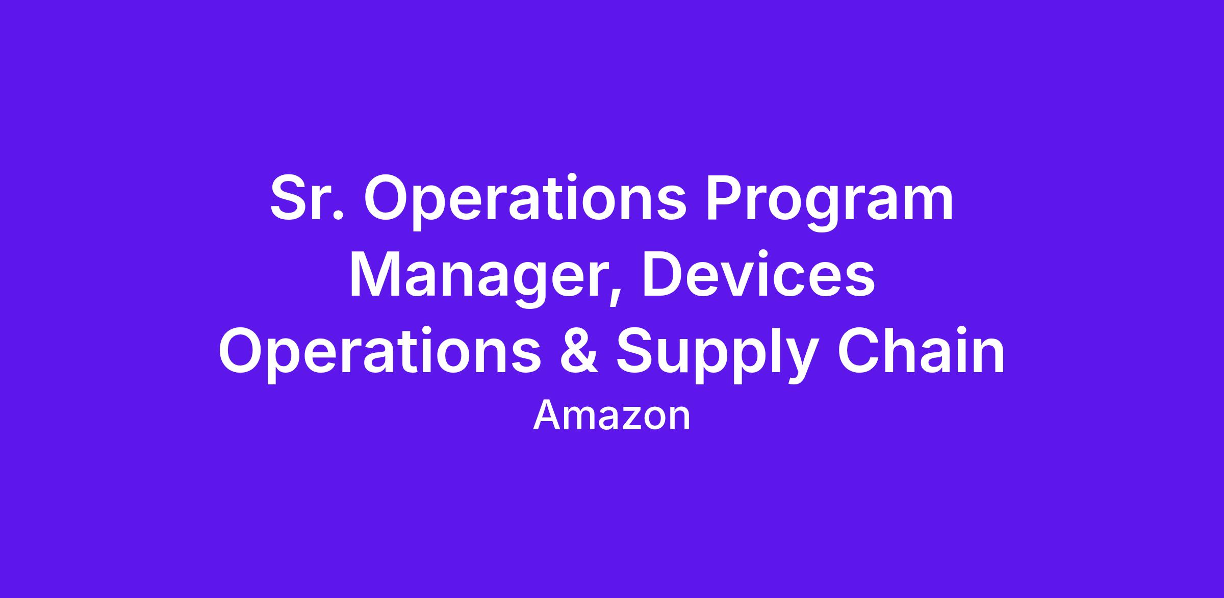 The Sr. Operations Program Manager (Sr. OPM) will work within the Device Operations group to develop the next generation of Amazon devices. The Sr. OPM will engage and work cross functionally across Engineering, Product Management, and Operations functions. The Sr. OPM will balance a mix of strategic, programmatic, and operational responsibilities to optimize new product cost, quality, and time to market. The individual is expected to work cross functionally to build consensus among the cross functional team and leadership. The individual will have experience in New Product Introduction in an Operations/Manufacturing role pertaining to Consumer Electronics (or similar) and have proven communications skills and ability to influence.