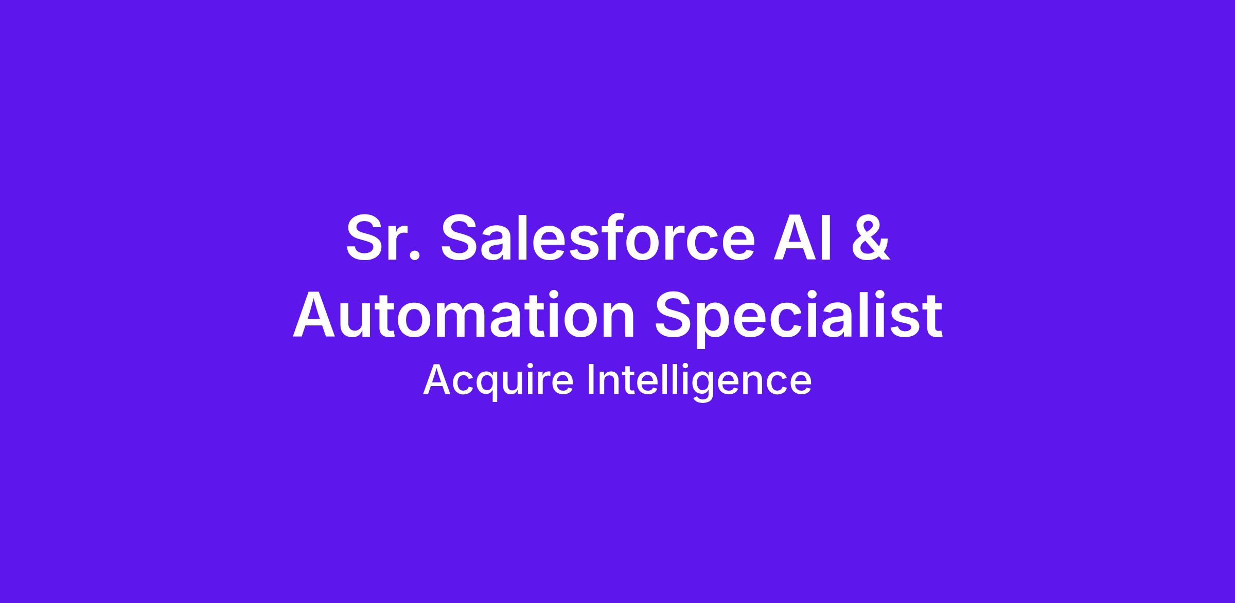 Salesforce Agentforce experience or Salesforce AI Associate / AI Specialist certification, or active pursuit.